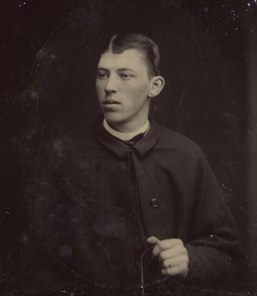 Svartvitt fotografi, ferrotyp, föreställande Ebbe Nergard, inom passepartout i papper.