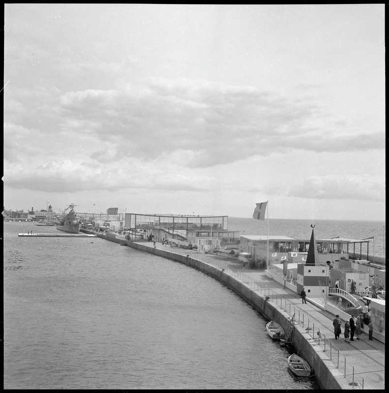 Bilden föreställer en utsikt över Parapeten med paviljonger. Till höger hamn.
