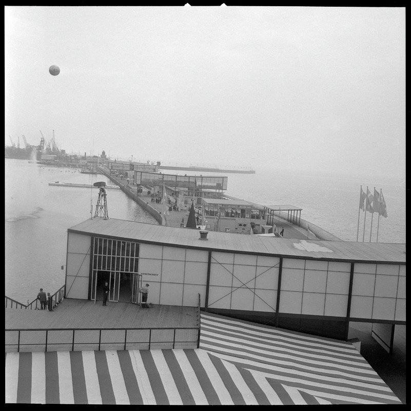 Bilden föreställer en bild av Parapeten i fågelperspektiv. Till vänster hamn och till höger hav.
