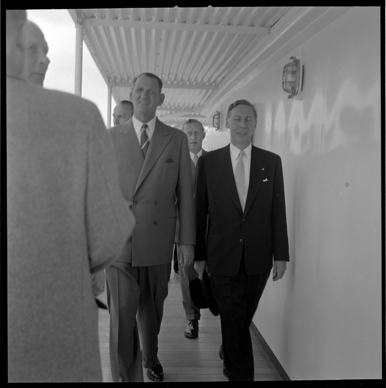 Bilden föreställer två män gående i en korridor. I bakgrunden ytterligare personer.