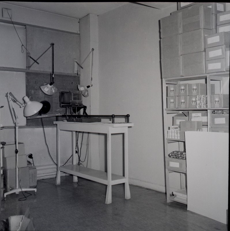 Laboratoriumet på Hefomas butik på Järnvägsgatan. Taget före ombyggnaden i slutet av 50-talet. Här avbildas avfotograferingen.