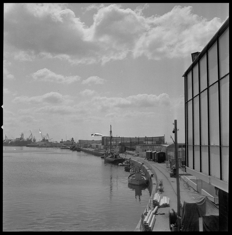 Bilden föreställer en överblick öveer Parapeten med byggnader till vänster och hamnen med båtar till höger.