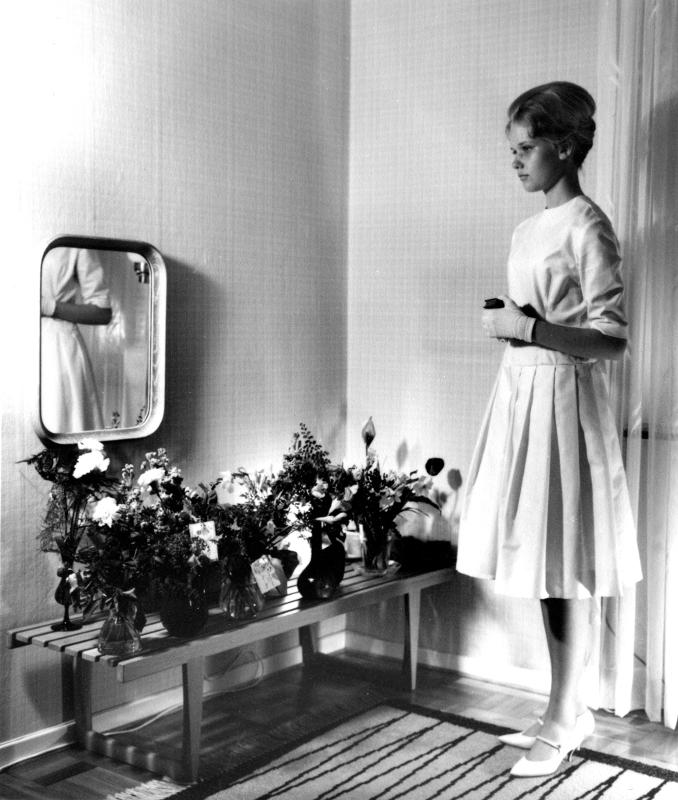 Svartvitt fotografiskt porträtt, helfigur, ståendes.