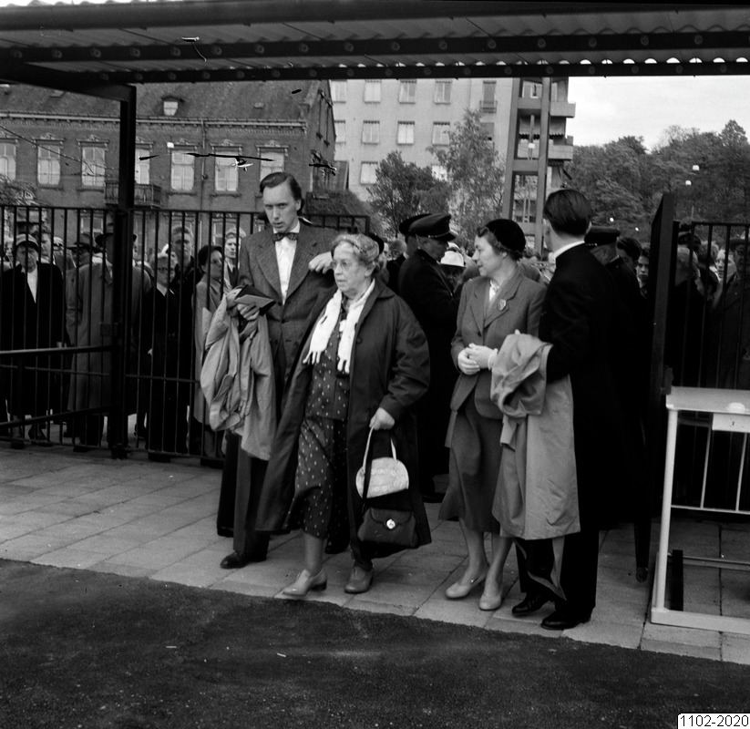Bilden föreställer kön vid entrén till H55. I förgrunden två kvinnor och två män.