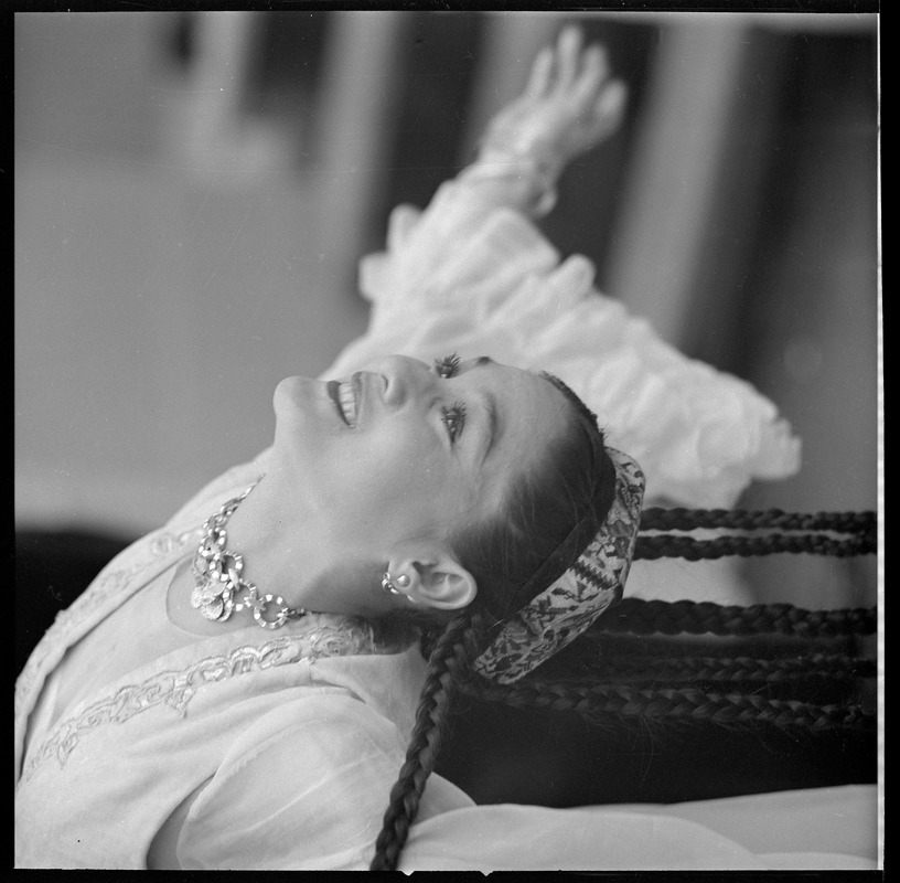 Bilden föreställer en bystbild av en kvinna i orientalisk klädsel i en dramatisk pose.