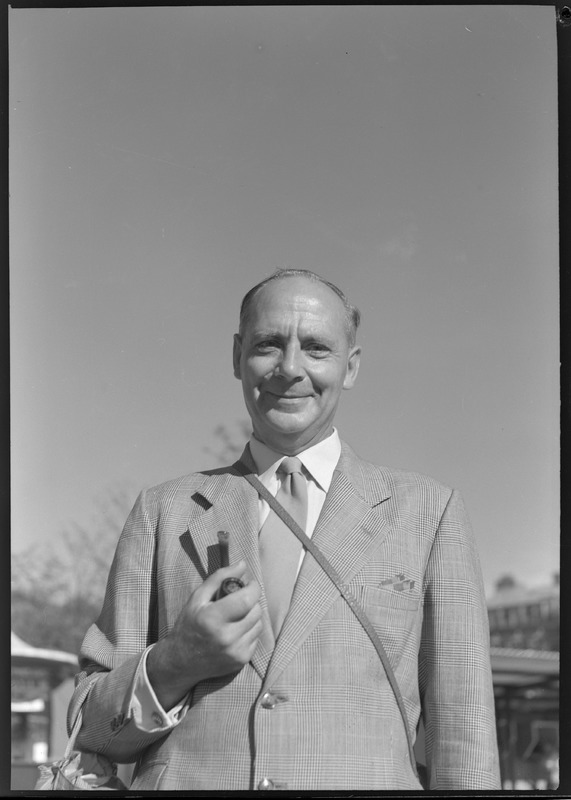 Bilden föreställer en man i halvformat med pipa i handen och himmel i bakgrunden.