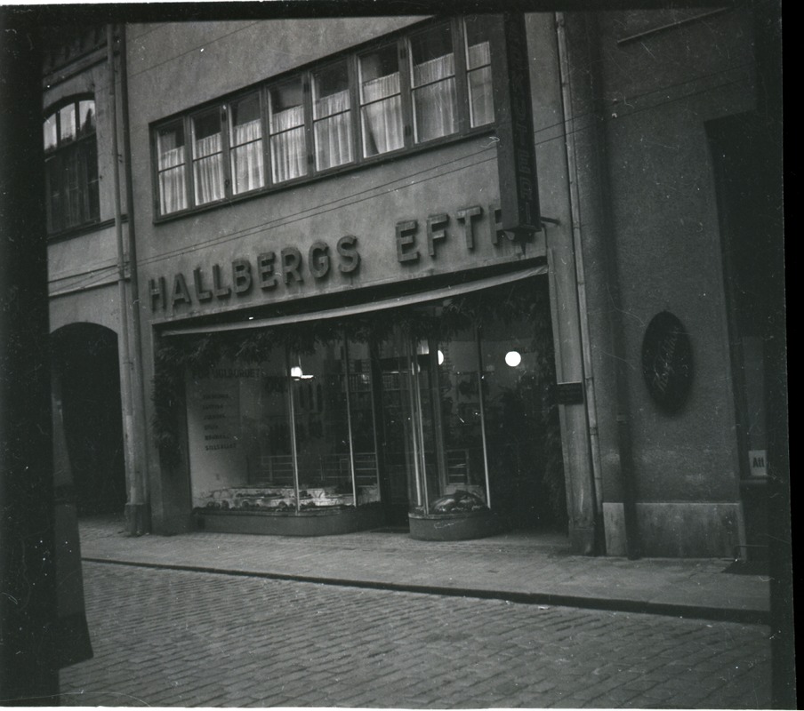 Fotografi som avbildar "Hallbergs Eftr" butik. Se även DIG_2020_936.