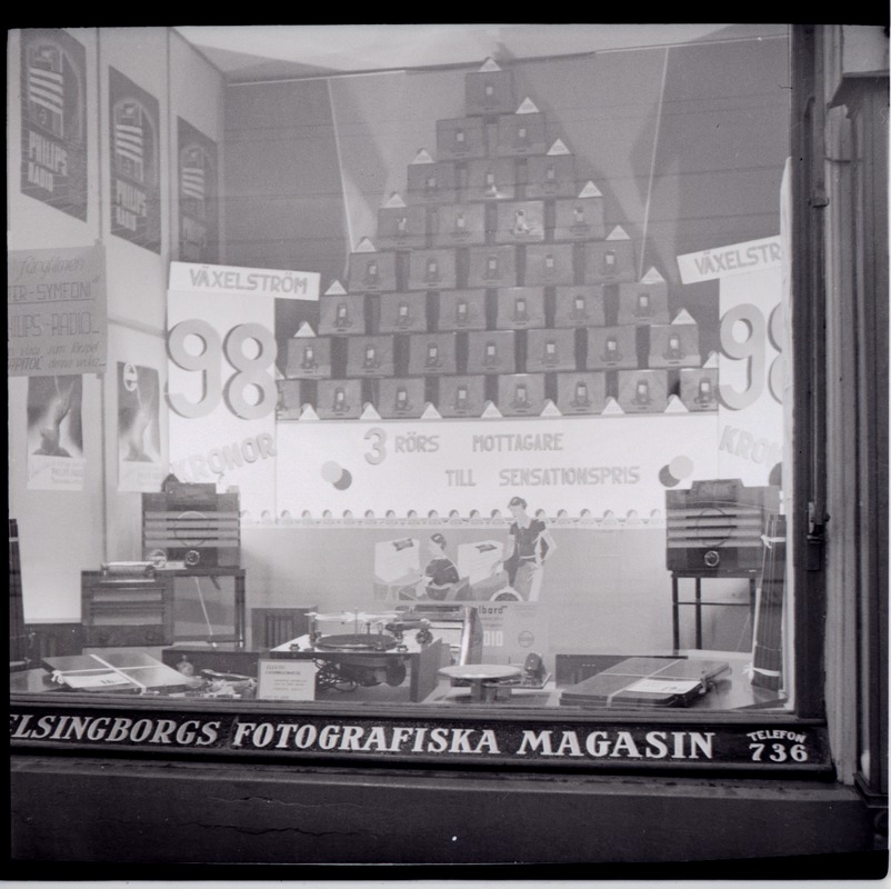 Fotografi som avbildar ett av Hefomas skyltfönster på Järnvägsgatan före ombyggnaden av fasaden.