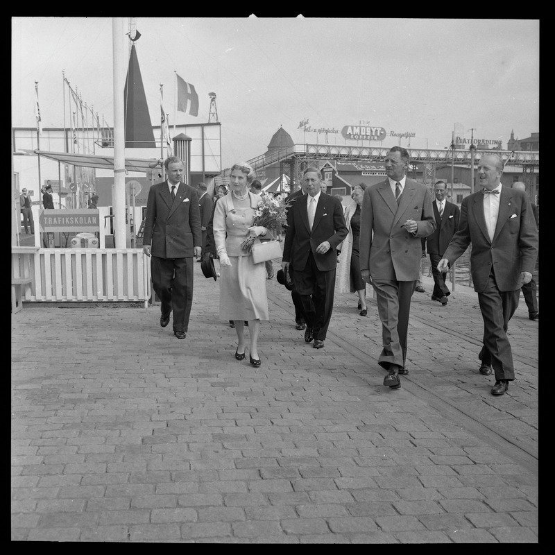 Bilden föreställer en grupp människor gående på utställningsområdet.
