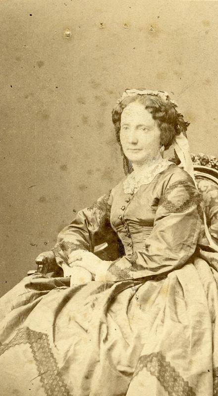 Svartvit porträttbild av en sittande kvinna i klänning.