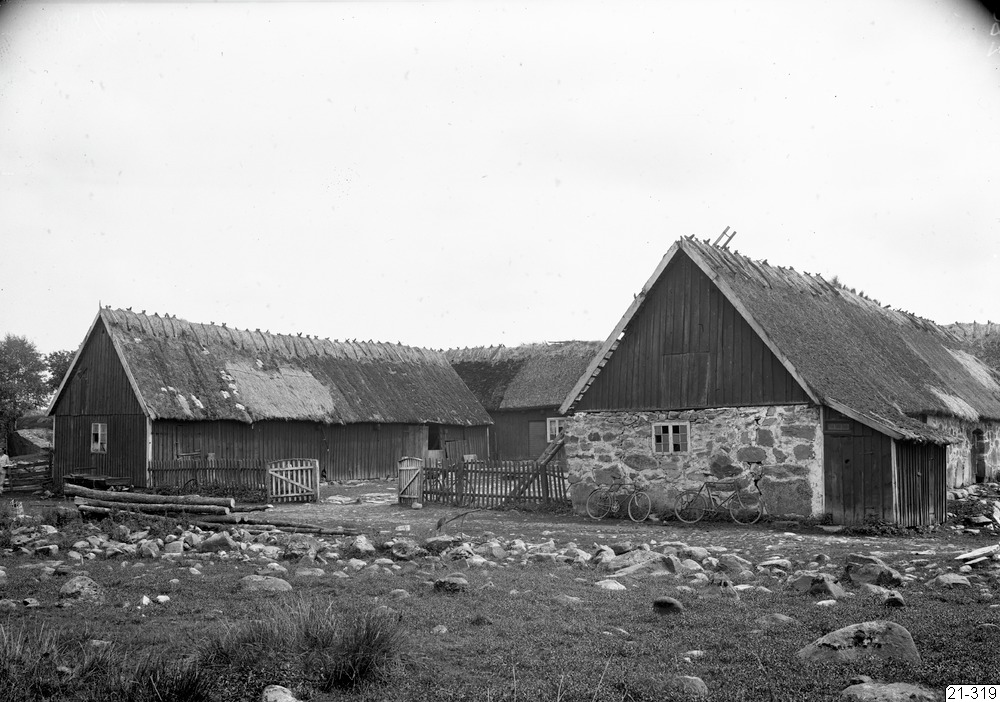 "Gården från NO; fr. v. loglänga, stuglänga och lagårdslänga"