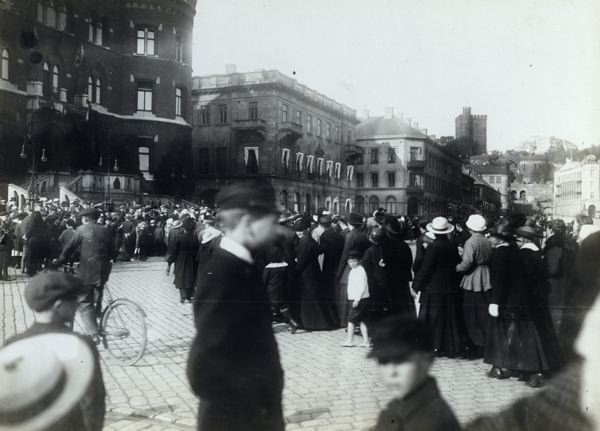 Fotografi föreställande hungerdemonstration vid rådhuset, Stortorget, Helsingborg.