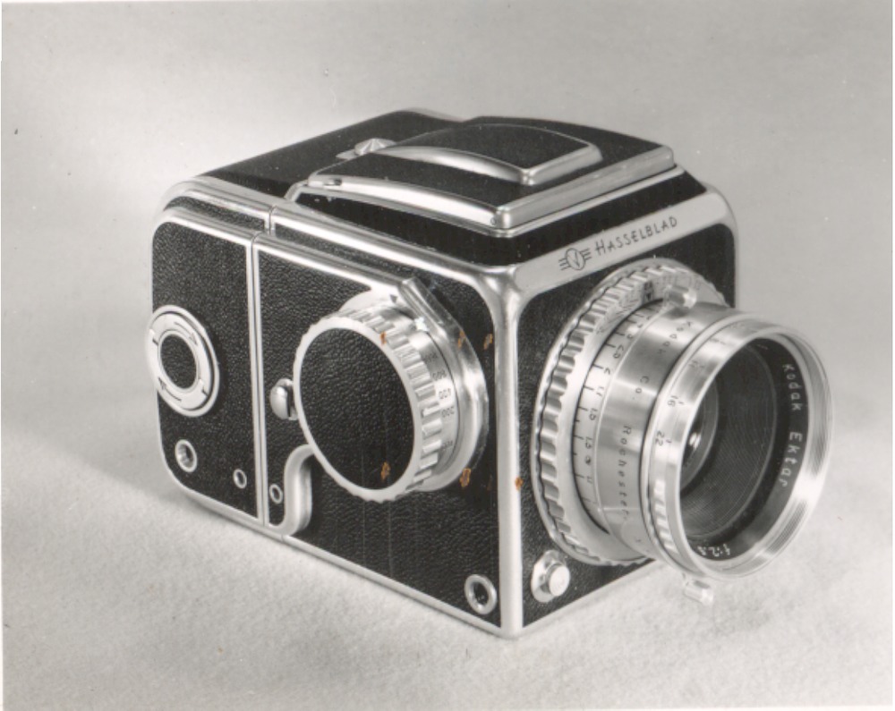 Fotografi som avbildar en Hasselblad kamera. Bilden är troligen tagen för Hefoma, men när och var är okänt.