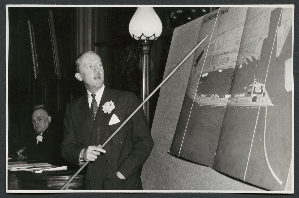 Bilden föreställer Åke Huldt visar Perepetenområdet på karta med pekpinne.