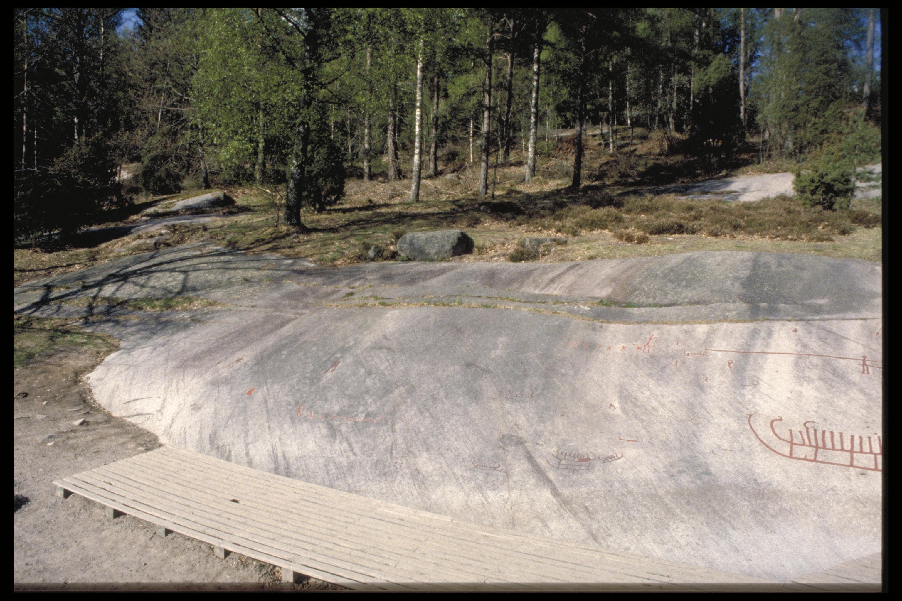 Vitlyckeristningen med besöksramp. Vitlyckehällen, Tanum 1:1.