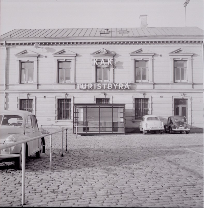 Fotografi som avbildar det Gamla Tullhuset. Framför tullhuset står en tillfällig Utställningsmonter.