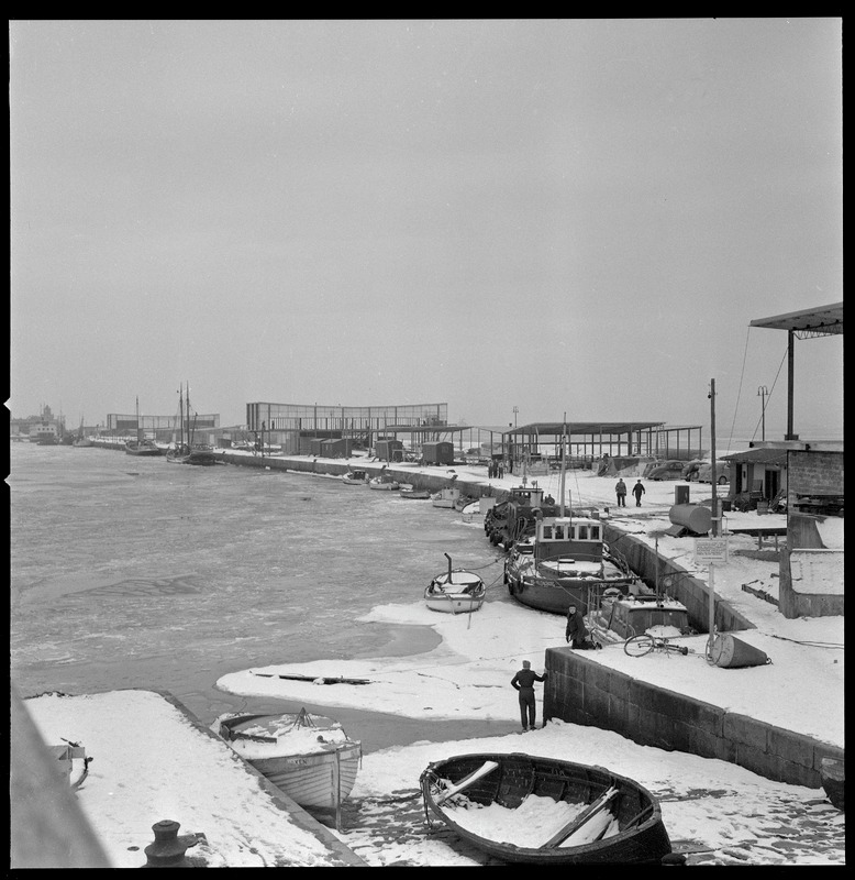 Bilden föreställer överblick över Parapeten med byggnader till vänster och hamnen med båtar till höger.