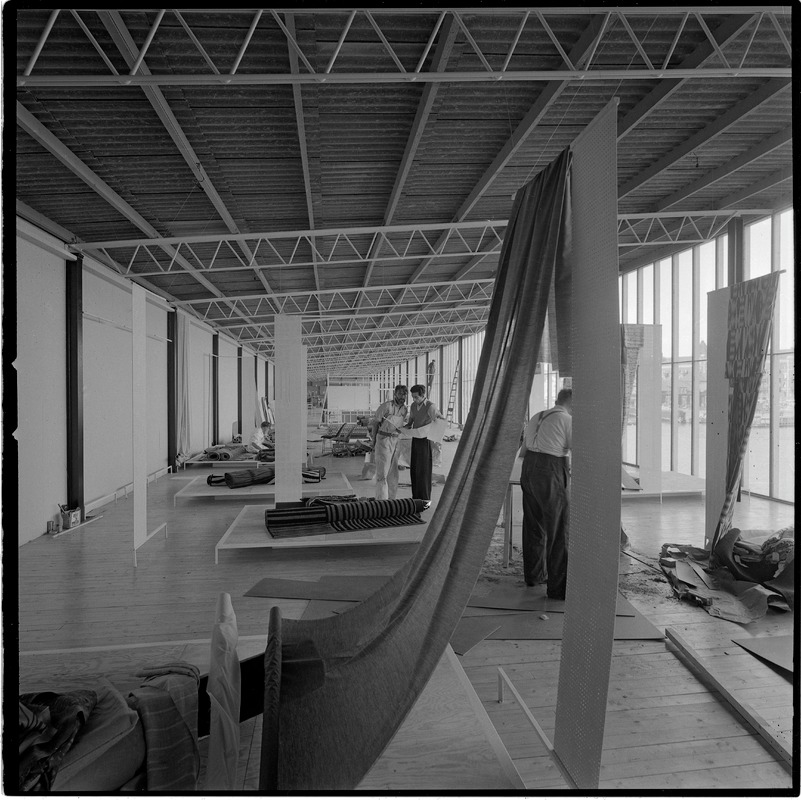 Bilden föreställer en stor öppen lokal som man håller på att inreda bland annat med trextilier.