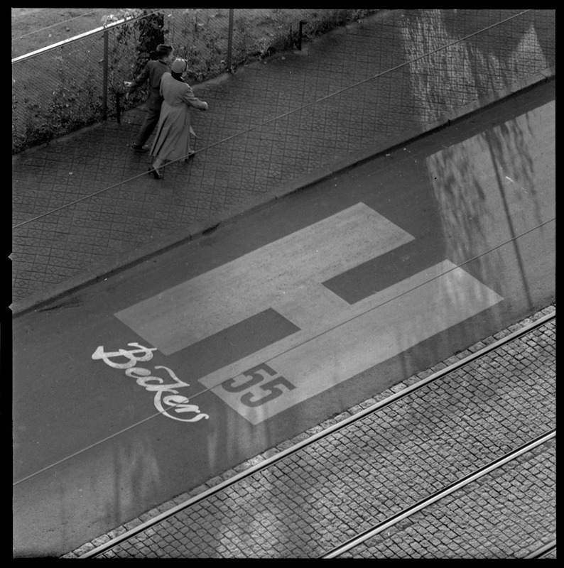 Bilden föreställer H55 logotypen målad på marken. UNdertill står det Beckers. En person syns i bakgrunden.