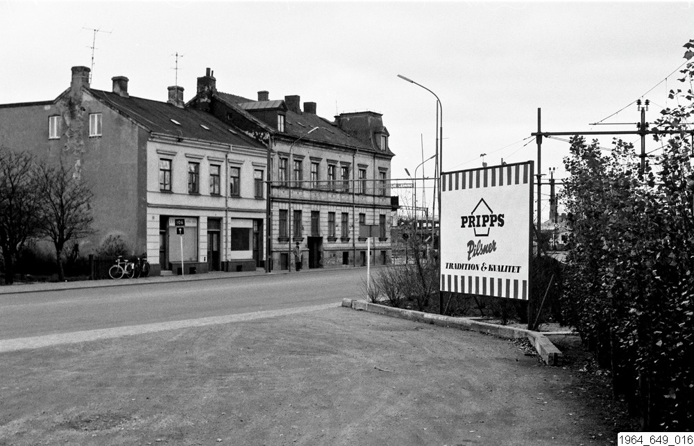 Carl Krocksgatan med reklamskylt för Pripps öl