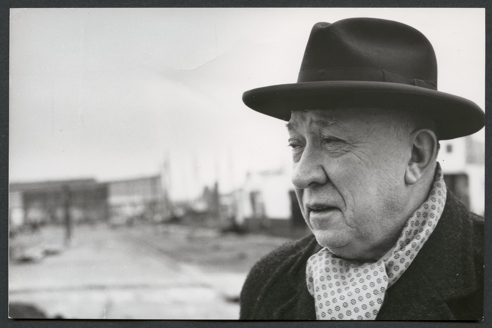 Bilden föreställer Gotthard Johansson. Manshuvud med hatt och scarf