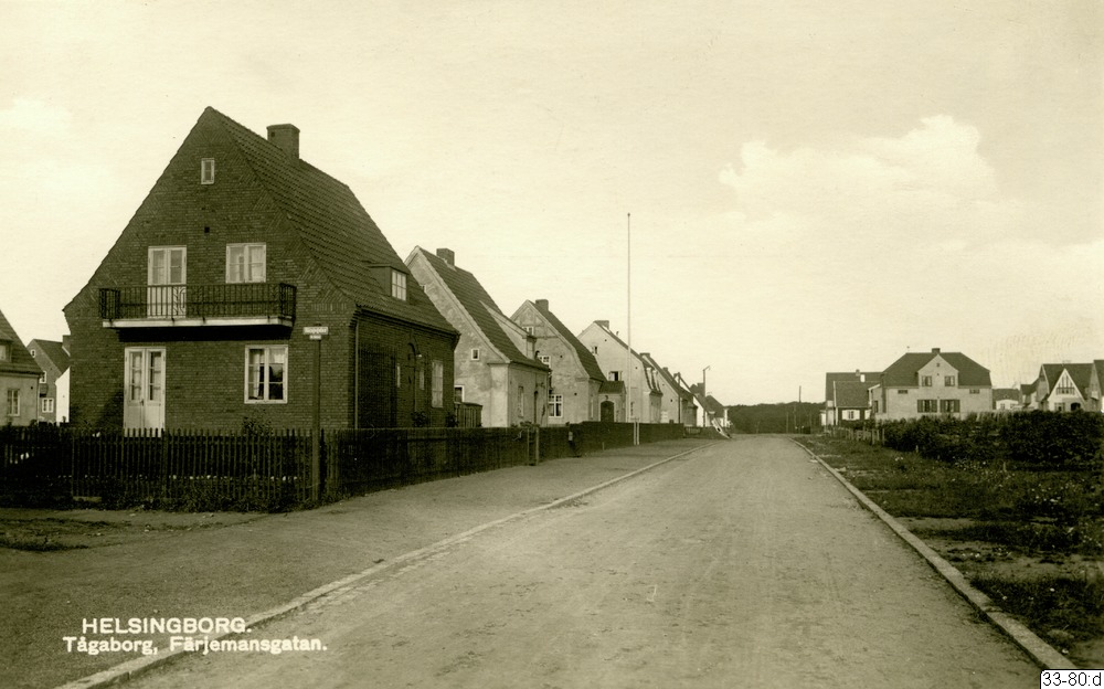 Till vänster i bild är kvarteret Boken, med fastigheten Boken 4 med adress Färjemansgatan 9 närmast i bild. På höger sida är kvarteret Granen västra