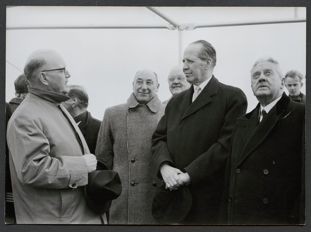 samspråkande herrar på bryggan på fartyget Inga, fler än 6 st.