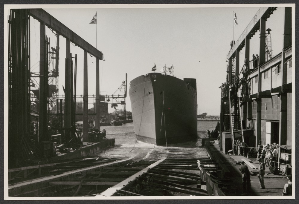 okänt fartyg glider ur dockn ner i Hbg:s hamn, fartyget har norsk flagg