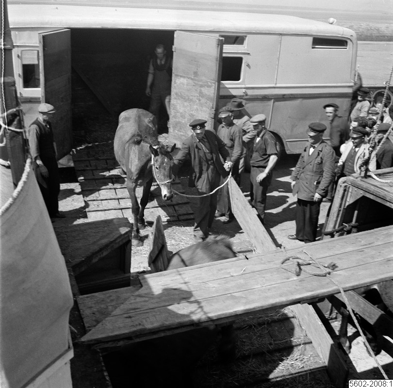 Beskrivning: de Amerikanska hästarna transporteras ut till Polen.
