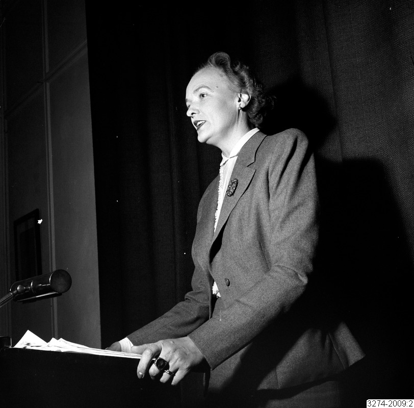 Byråinspektören vid arbetsmarknadsstyrelsen Svea Starrin-Reindahl var inbjuden till Helsingborg för att tala om sjukvårdsfrågan.