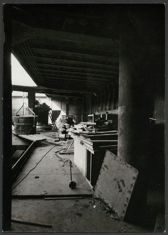 Bilden föreställer industrimiljö. Troligen fartyg under uppbyggnad.
