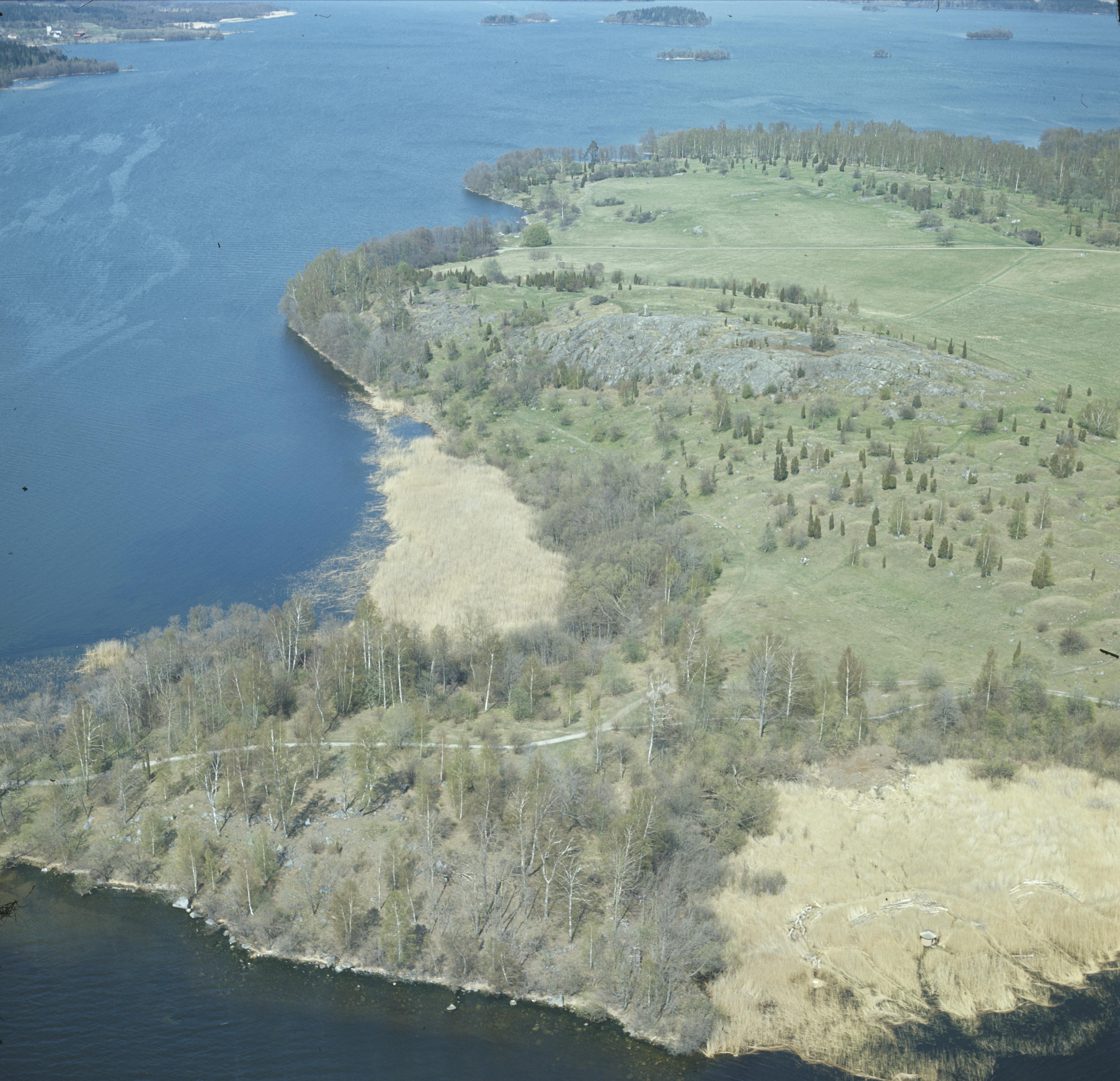 Björkö från söder med Borgberget och Svarta jorden i bakgrunden.