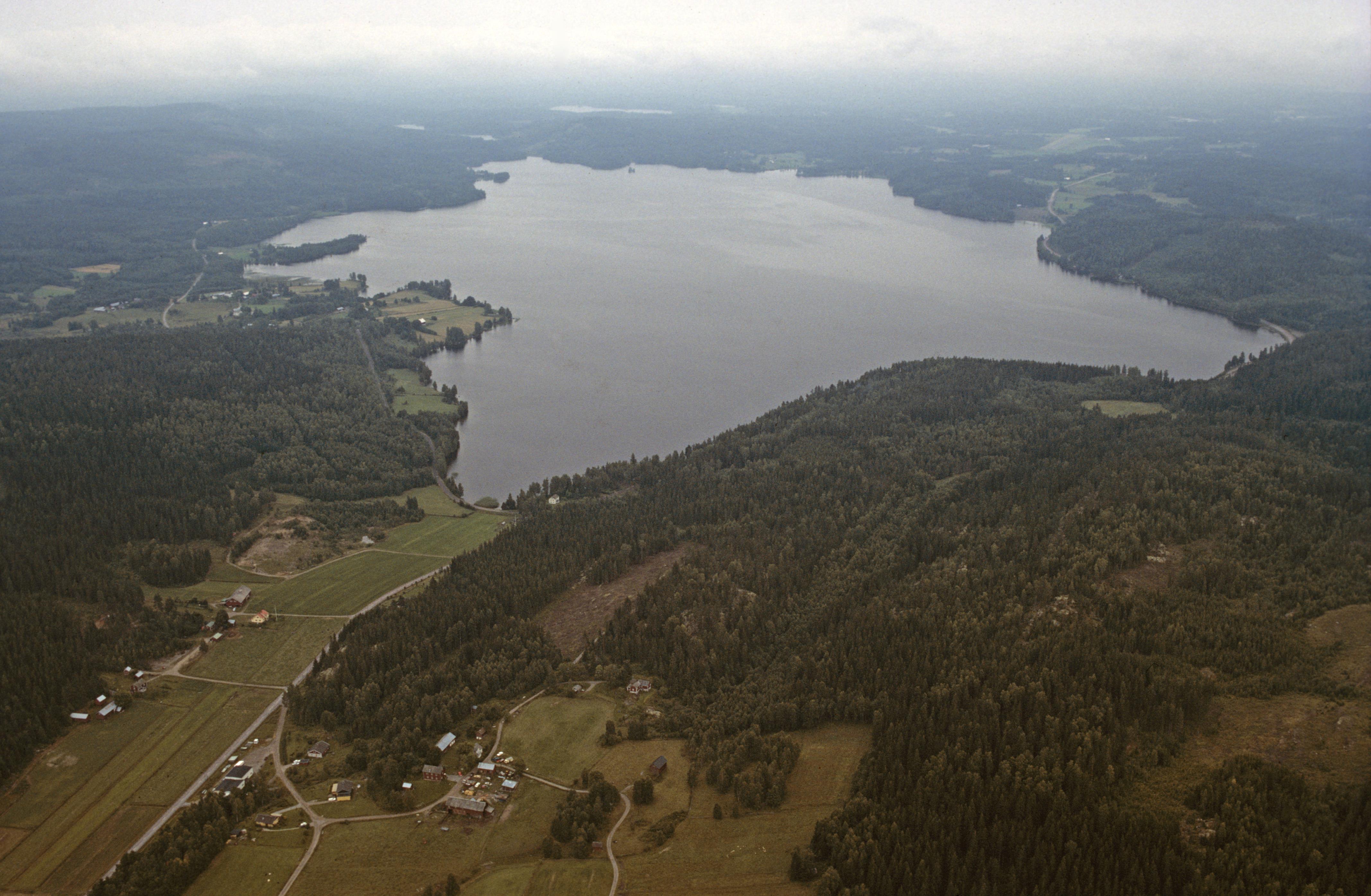 Sjön Racken med omgivning. Bilden troligen från mitten av 1980-talet.