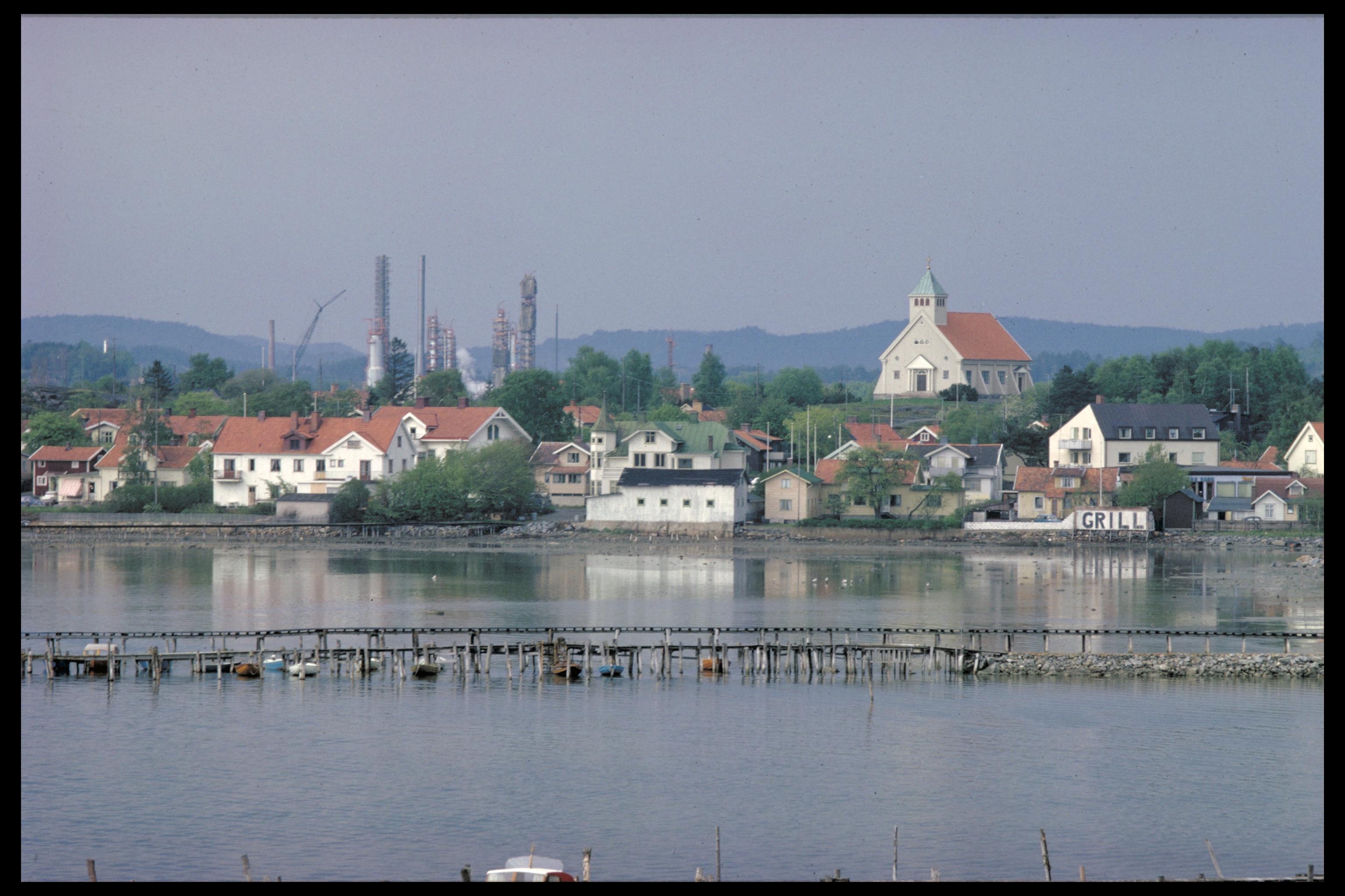 Stenungsunds kapell i bildens högra del. Bilden troligen från mitten av 1960-talet.