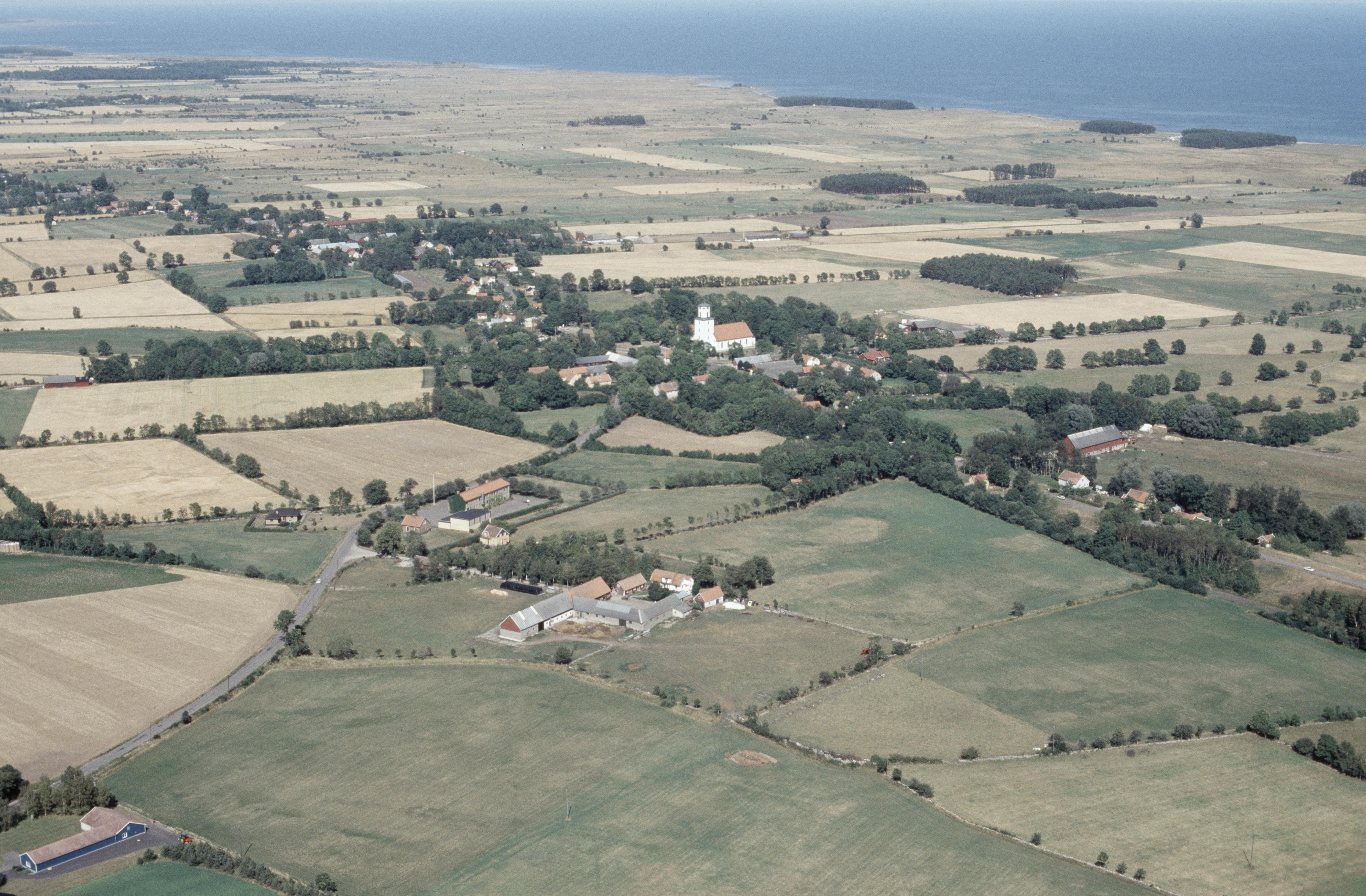 Runstens kyrka och kyrkby. Bilden är tagen mot (väderstreck): NO