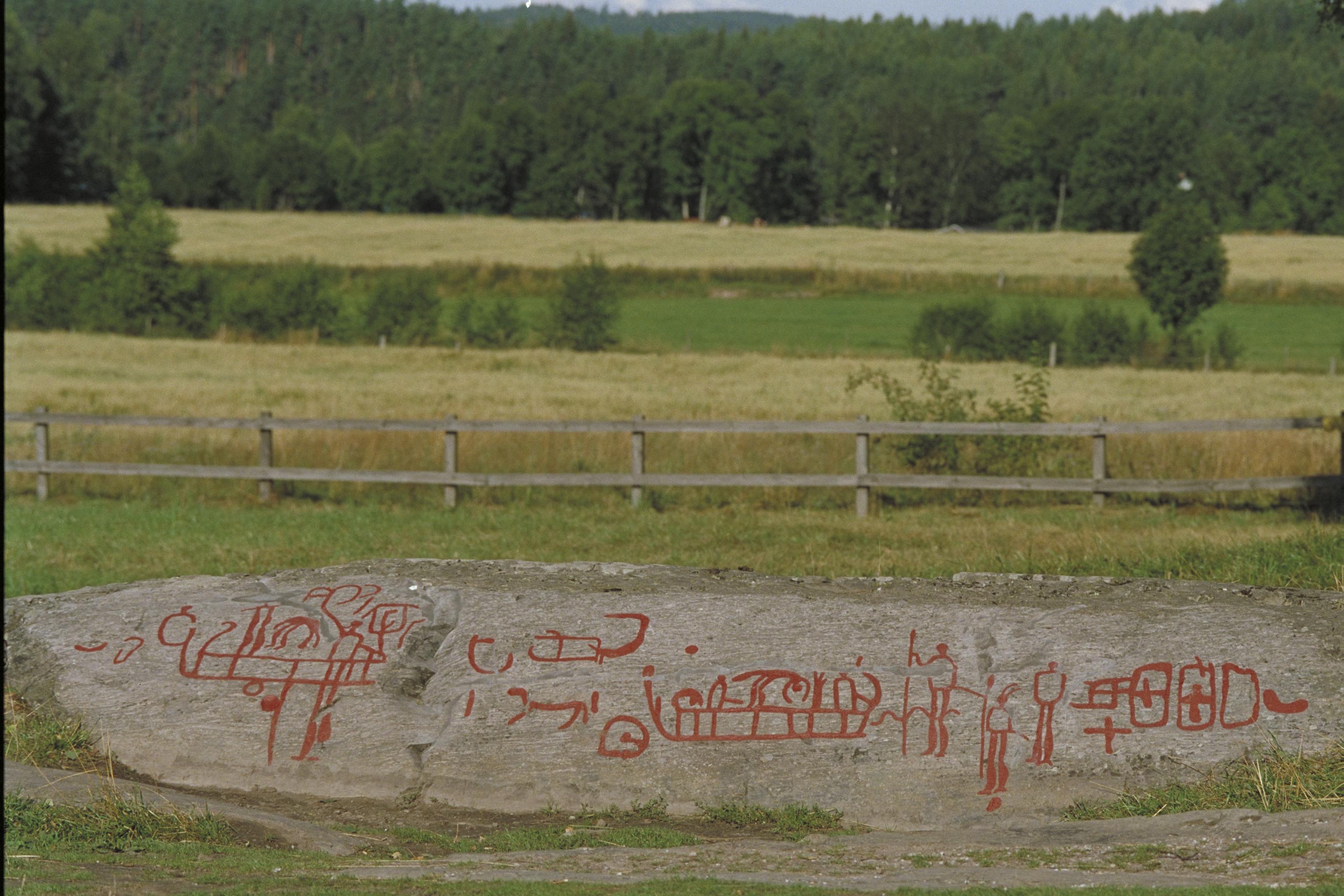 RAÄ-nummer Tisselskog 11:1. Processionshällen. Skepp med voltigörer, människofigurer och fotsulor.