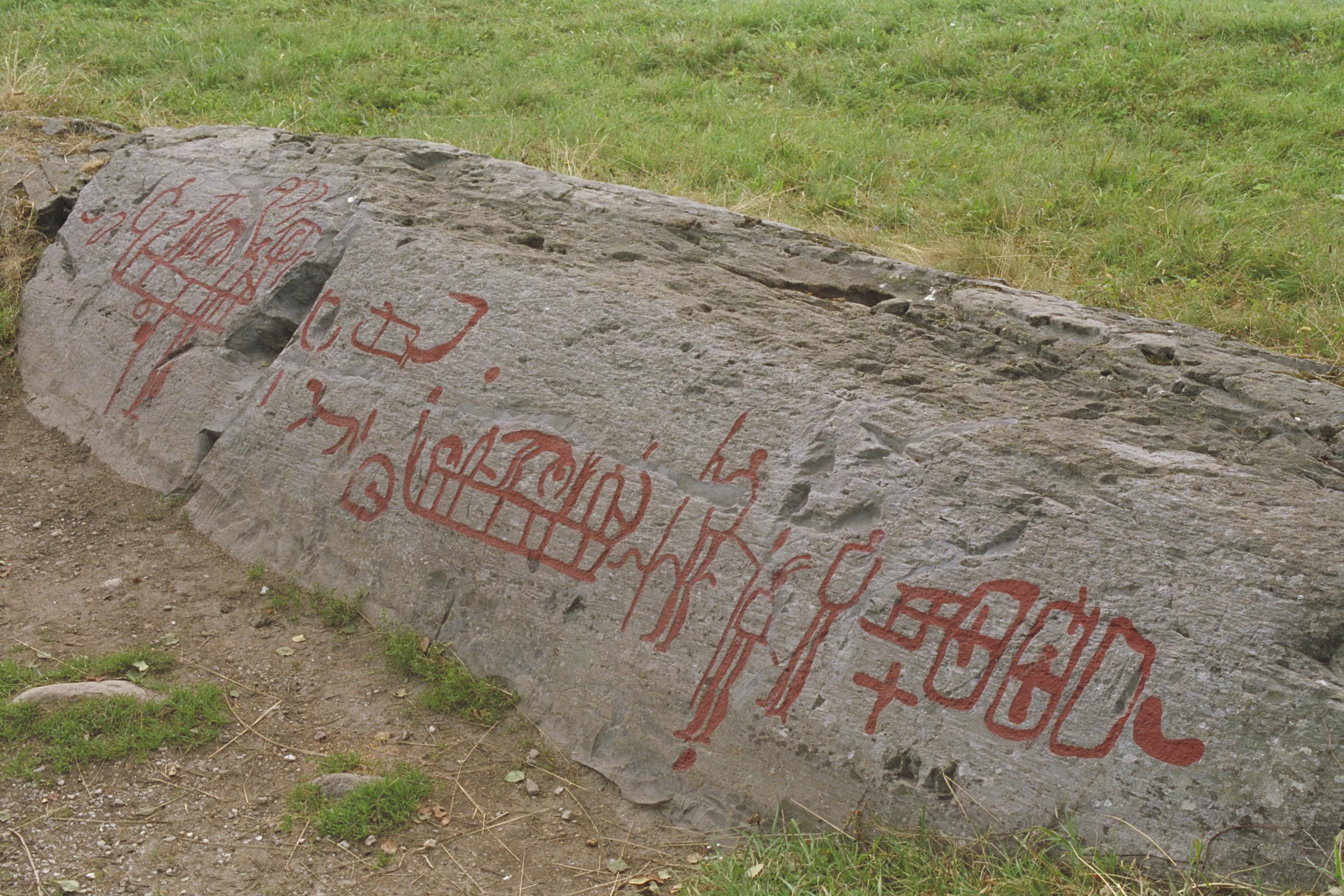 RAÄ-nummer Tisselskog 11:1. Processionshällen. Fotsulor, människofigurer med spjut och skepp med voltigör.