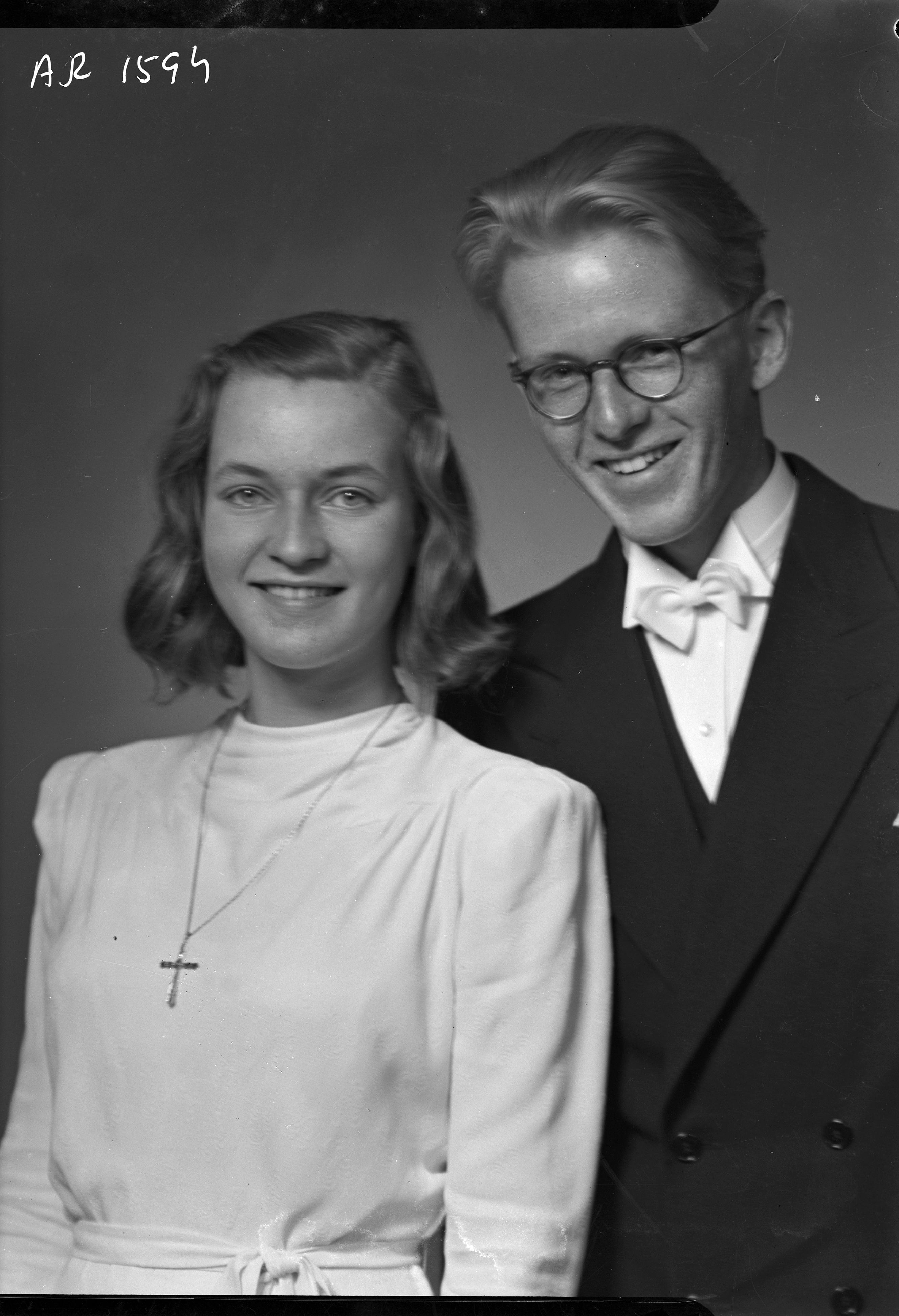 Fru Betty Sörensen - ungt par (konfimander ?), Rönneholmsvägen 33