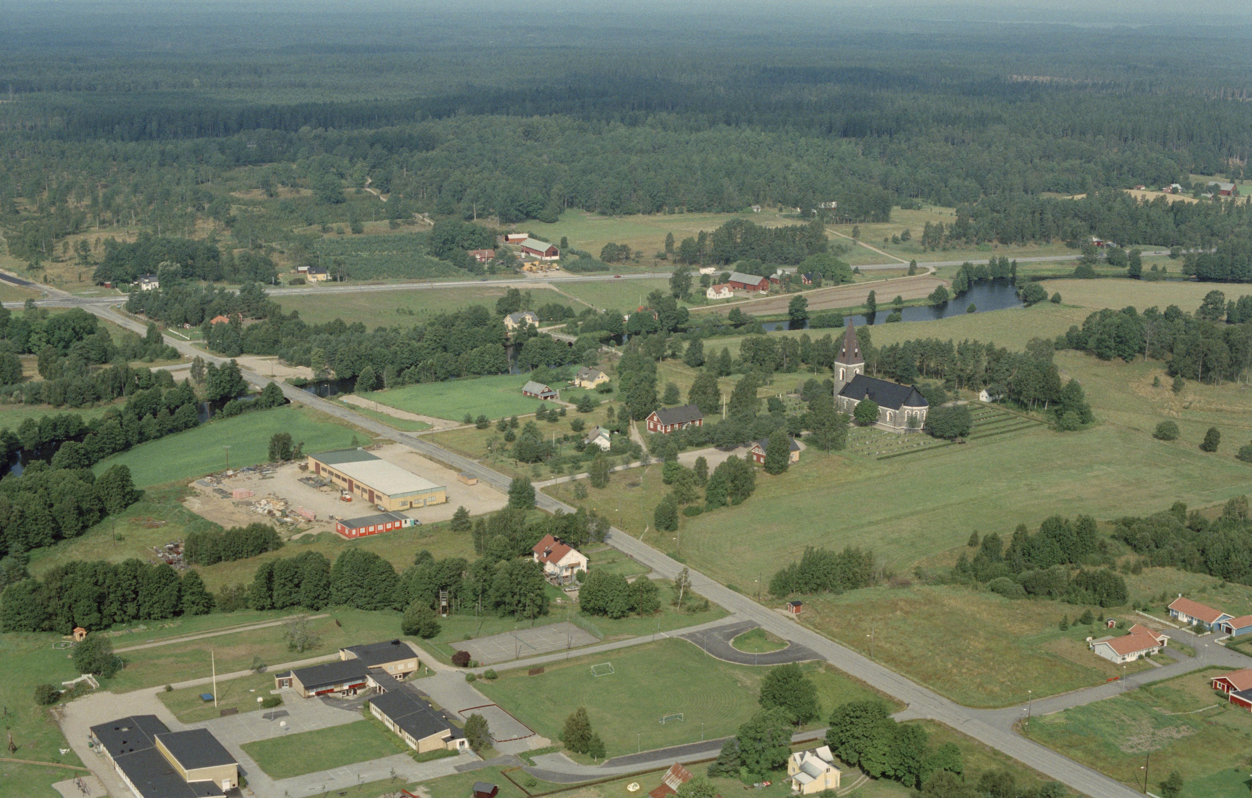 Hamneda kyrka och kyrkby. Bilden är tagen mot (väderstreck): NV