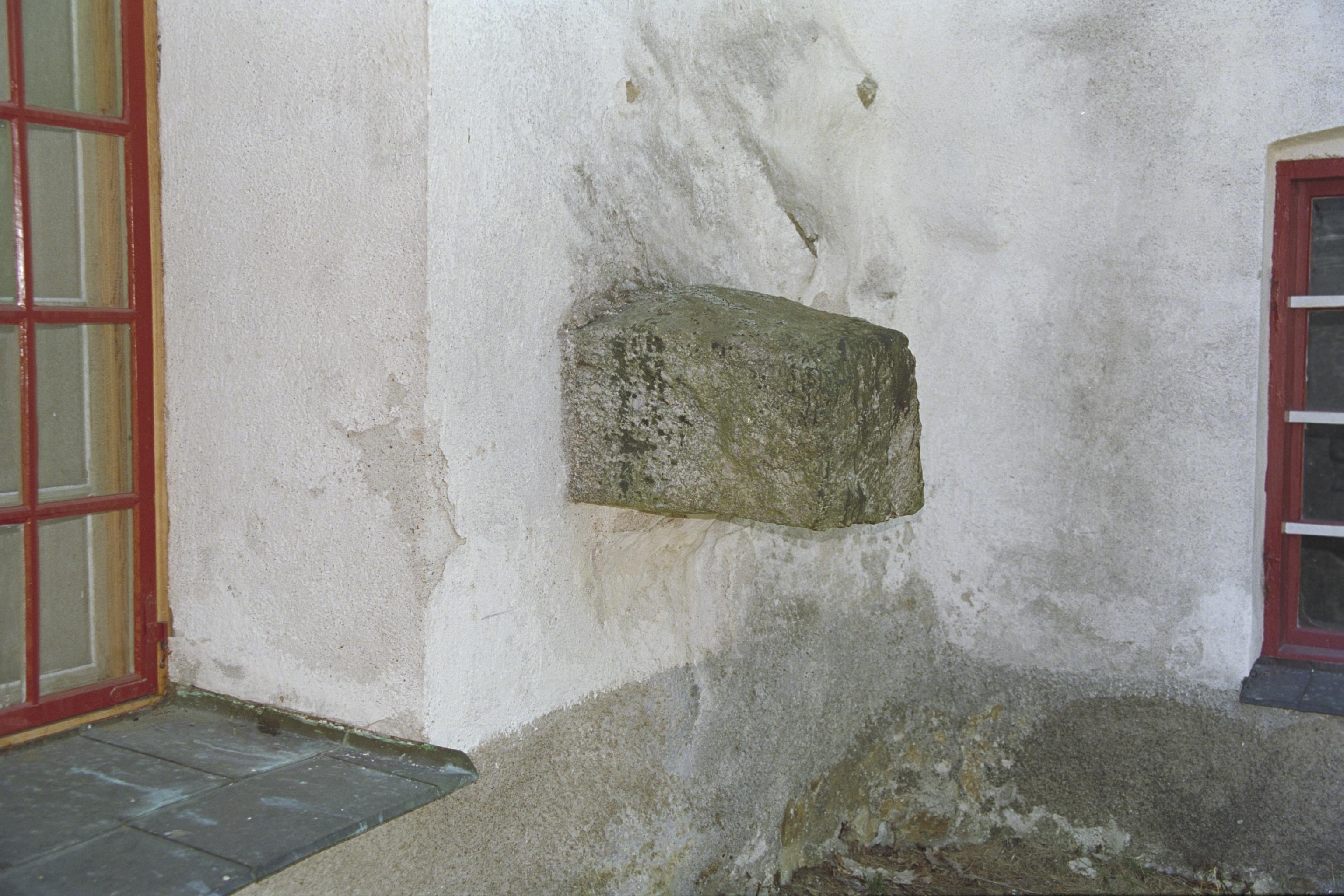 Koret, N fasaden, utskjutande sten, rester efter tidigare sträva.
