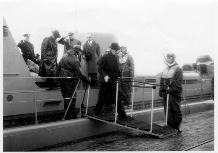 Enligt fotografens notering: "Konung Gu Ad i Lysekil besök på örlogsf".