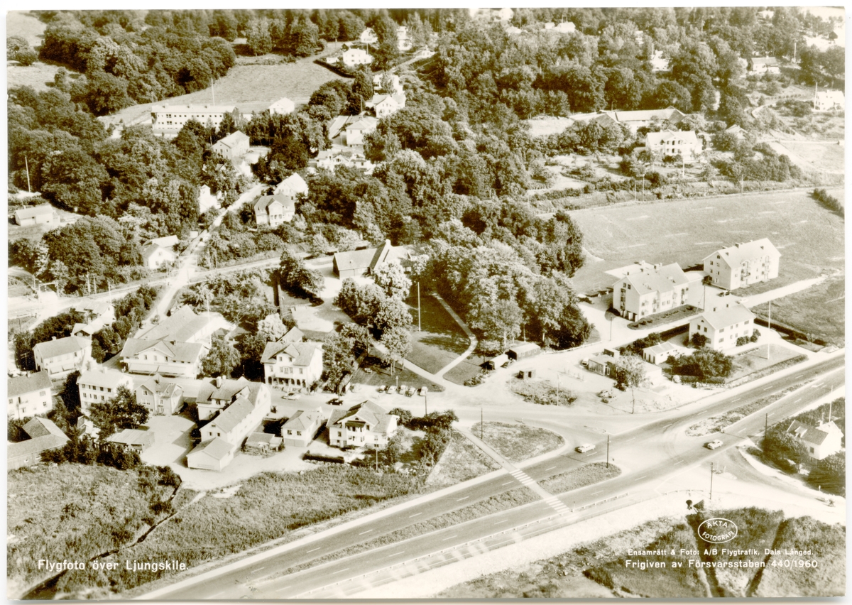 Enligt Bengt Lundins noteringar: "Flygfoto över Ljungskile. Södra infarten".