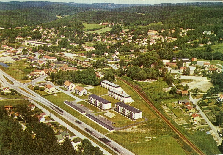 Enligt Bengt Lundins noteringar: "Flygfoto över Ljungskile. Södra infarten".