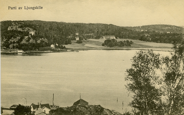 Enligt Bengt Lundins noteringar: "Parti av Ljungskile. Berg från Valåsberget".
