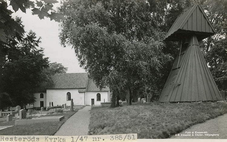 Enligt Bengt Lundins noteringar: "Resteröds Kyrka med klockstapel".