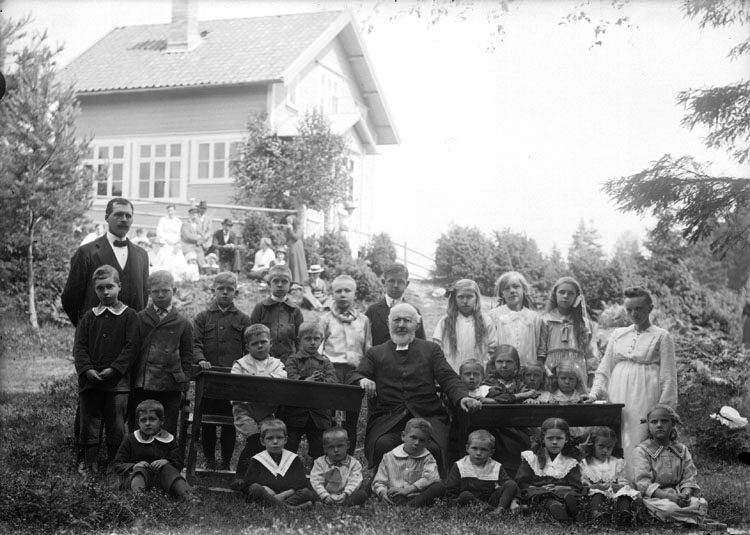 Enligt noteringar: "Troligen skolavslutning i Skredsviks sn (vid Studseröd). Prästen är Johannes Daniel Laurell f.14 februari 1852, prost och kyrkoherde i Skredsvik." (BJ)