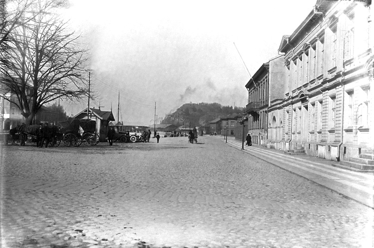 Enligt tidigare noteringar: "Norra Hamngatan, Uddevalla. Hästdroskan har fått konkurens från automobilen."