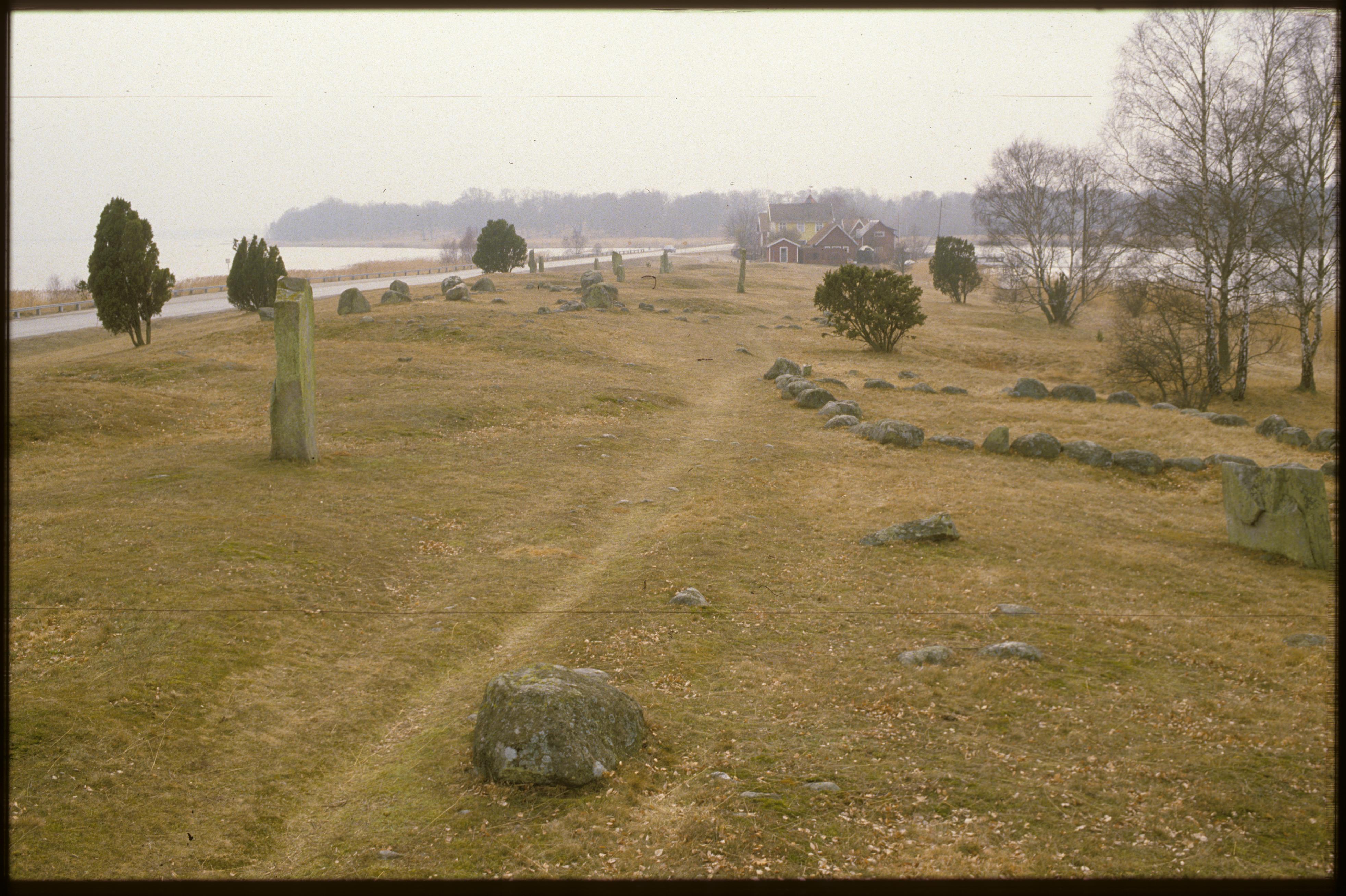 RAÄ-nummer Förkärla 12:1. Gravfält, bestående av 110 fornlämningar, vilka utgörs av stensättningar, skeppssättningar, treuddar, stenrader och resta stenar.