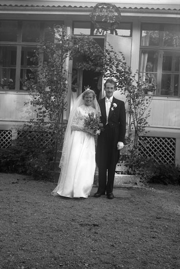 Enligt fotografens journal nr 8 1951-1957: "Johnson, Brudp. Prästgården Spekeröd".