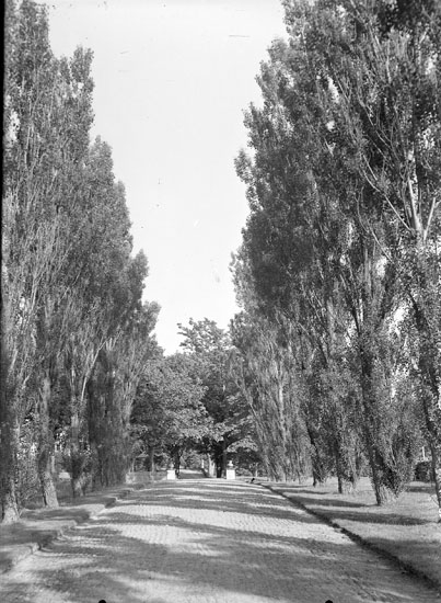 Framfartsväg till Morlanda Säteri kantad av pyramidpopplar